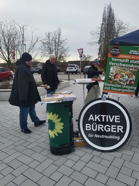Am Valentinstag 2026 präsentierten sich die Aktiven Bürger & Grünen Neutraubling mit einem Infostand vor dem Hallenbad. Bei selbstgebackenen Muffins und Kuchen luden die Stadtratskandidaten die Bürgerinnen und Bürger dazu ein, über die Zukunft ihrer Stadt ins Gespräch zu kommen.