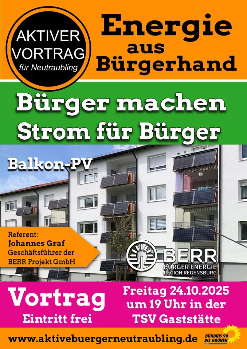 Am Freitag, den 24. Okt. 2025, wird uns Johannes Graf um 19 Uhr in der TSV Gaststätte am Sportpark persönlich über BERR informieren.