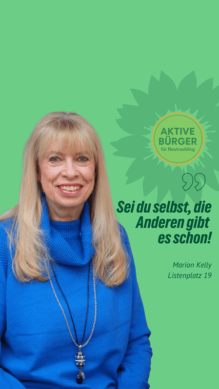 “Nachhaltig aktiv” für Neutraubling. Marion Kelly ist unsere Stadtratskandidatin auf Listenplatz 19. Sie freut sich über faire Äußerungen, sachliche Anregungen und Fragen in den Kommentaren. Gemeinsam mit ihr und vielen anderen gestalten wir Neutraubling “aktiv nachhaltig”.