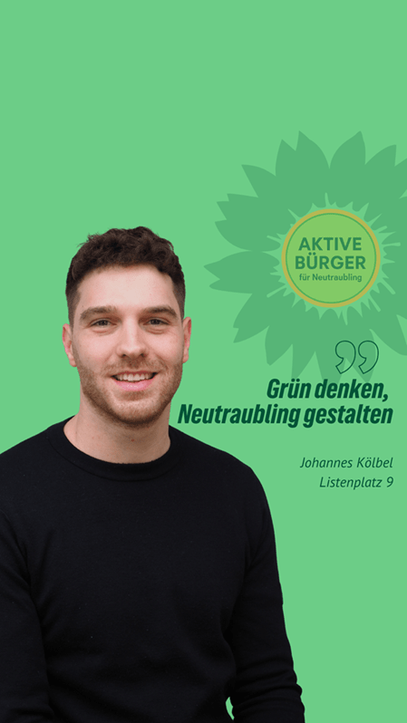 Frischer Wind für Neutraubling. Johannes Kölbel ist unser Stadtratskandidat auf Listenplatz 9. Er freut sich über faire Äußerungen, sachliche Anregungen und Fragen in den Kommentaren. Gemeinsam mit ihm und vielen anderen gestalten wir Neutraubling “nachhaltig aktiv” und “aktiv nachhaltig”.