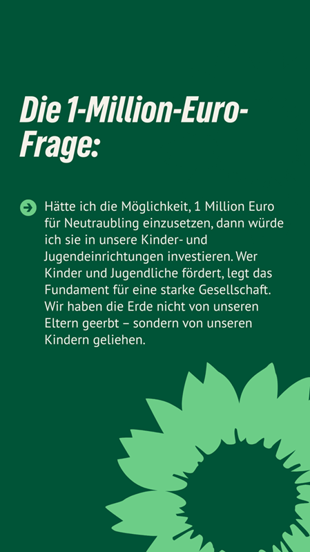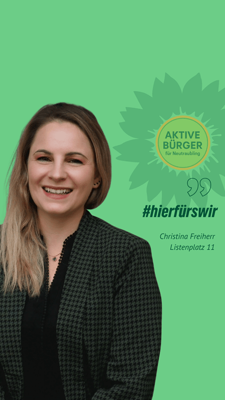 Frischer Wind für Neutraubling. Christina Freiherr ist unsere Stadtratskandidatin auf Listenplatz 11. Sie kandidiert auch für die Grünen auf der Kreistagsliste. Sie freut sich über faire Äußerungen, sachliche Anregungen und Fragen in den Kommentaren. Gemeinsam mit ihr und vielen anderen gestalten wir Neutraubling “aktiv nachhaltig” und “nachhaltig aktiv”.